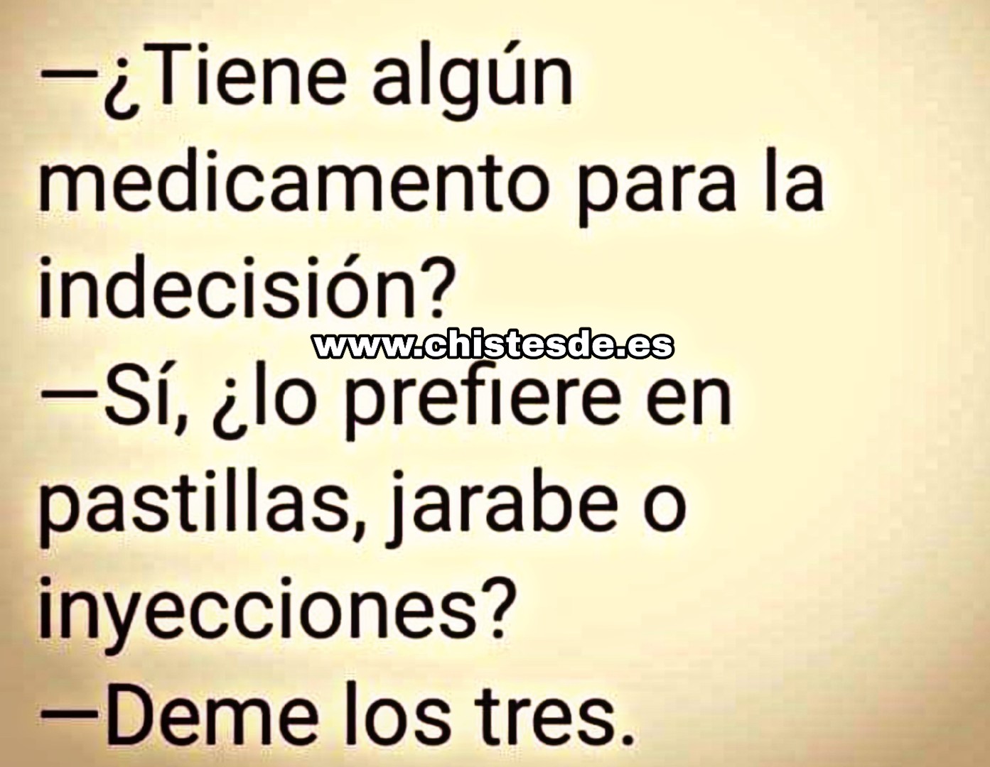 —Señor, creo que no me ha entendido; aquí vendemos medicinas, perfumería, artículos de aseo…